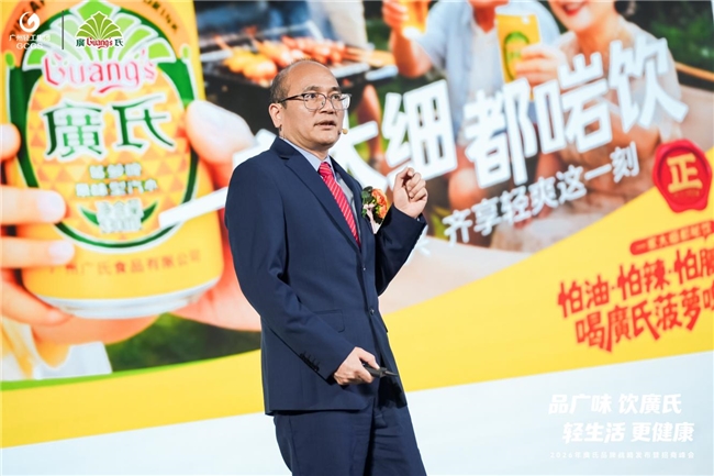 黄志华表示,廣氏历经九十二年深耕,已成为岭南文化的一张名片,2026年品牌站在新的历史起点,将以“正宗·正源·正味”为根基,全面推进品牌焕新。他明确指出:“2026年,廣氏的战略方向非常清晰:先做深菠萝专家,以品类第一的绝对优势走向全国;再做广,成为岭南水果饮料专家,以更丰富的品类矩阵,为消费者提供更多正宗岭南风味的健康选择。”廣氏品牌将聚焦产品创新与品质提升,深耕菠萝核心品类,拓展岭南特色水果饮品矩阵,坚守非遗工艺与现代健康理念融合;打造标准化、年轻化展示场景,强化消费者互动体验。黄志华进一步强调:“2026年,廣氏将正式启动‘千店计划’——在全国范围内系统升级终端形象,打造廣氏标准化的品牌体验场景。”渠道上坚持“省内深耕、省外破圈”,重点拓展华中、西南和西北区域市场,同时发力电商渠道开辟增长第二曲线,完善经销商赋能体系,通过政策扶持、营销倾斜、数字化指导等举措,助力经销商降本增效,推动品牌从区域龙头向全国性健康饮品标杆跨越。